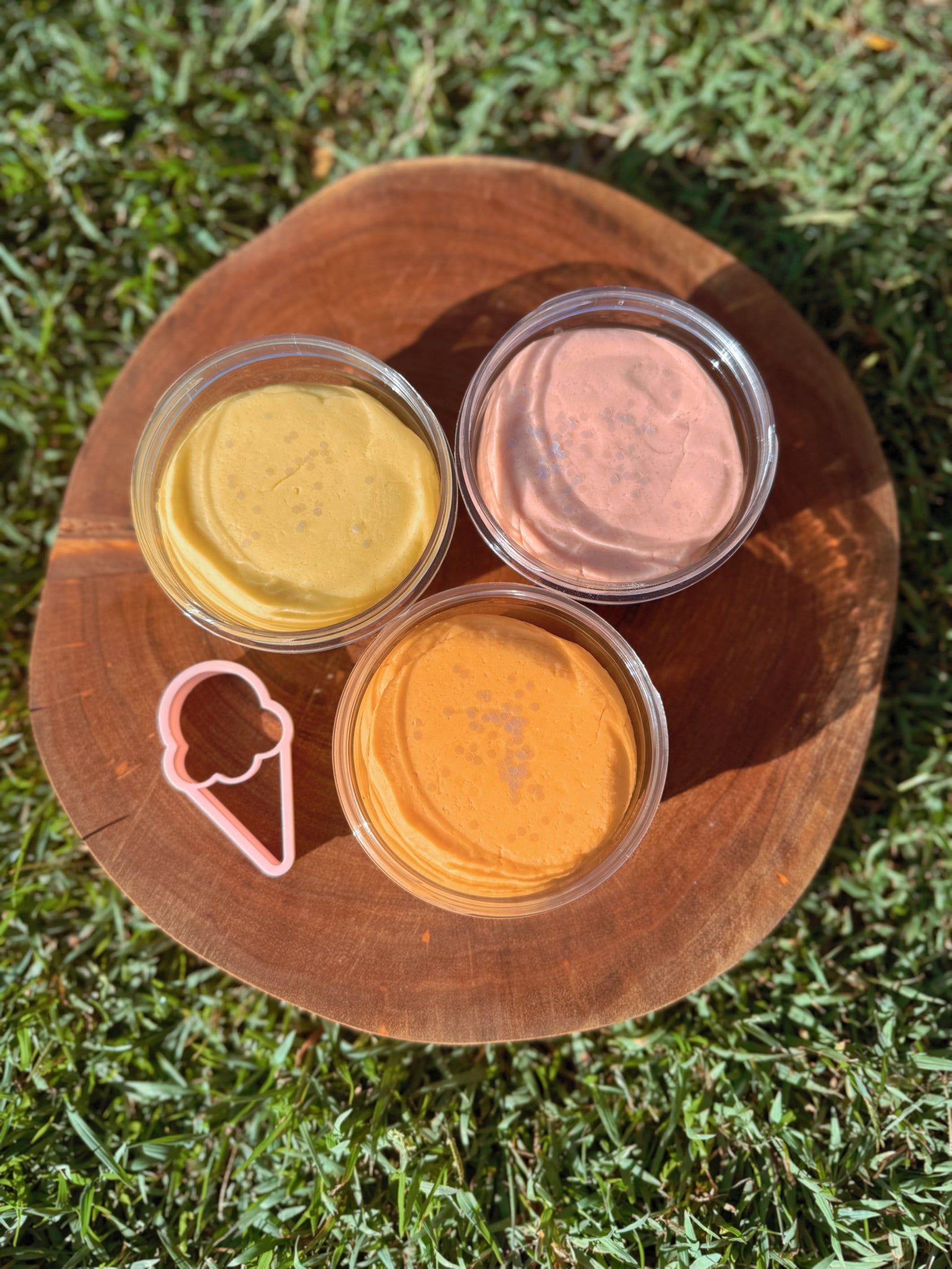 Lemon Sorbet is soft, silky and scented with a cheerful hint of lemon essential oil. Like a warm, bright day captured in playdough form. Its sweet yellow colour invites little hands to squish, roll and dream up sunny creations, turning simple moments into golden play.